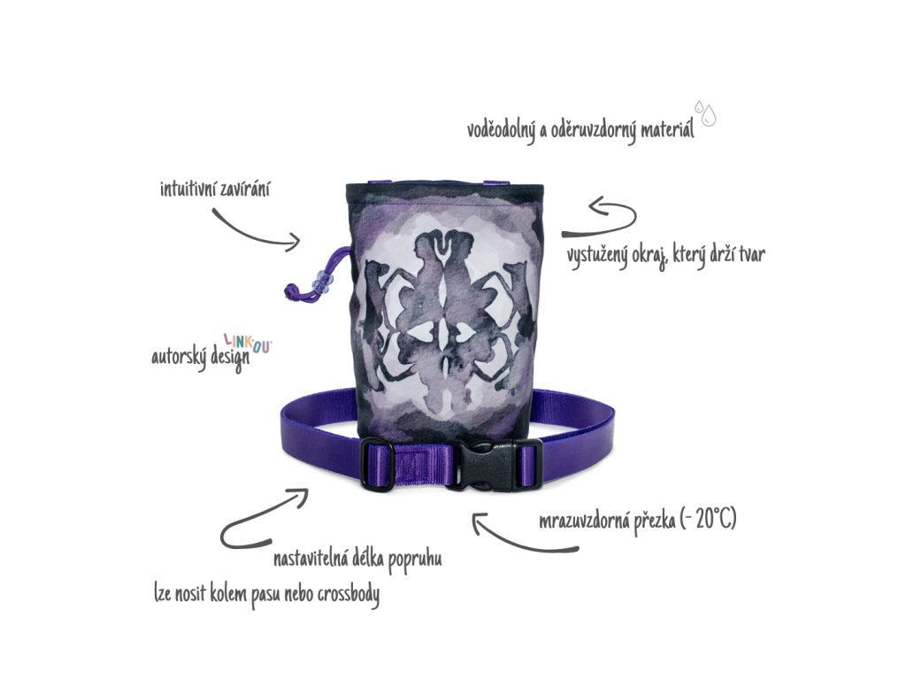 The single-pocket treat pouch is an integral part of training and promptly rewarding your dog for a perfectly executed command. The practical opening allows for quick and easy use. In addition, thanks to the original design by LINKOU illustrator Evelína Vaněčková, you will look so cool with the treat box that even other dogs will envy.